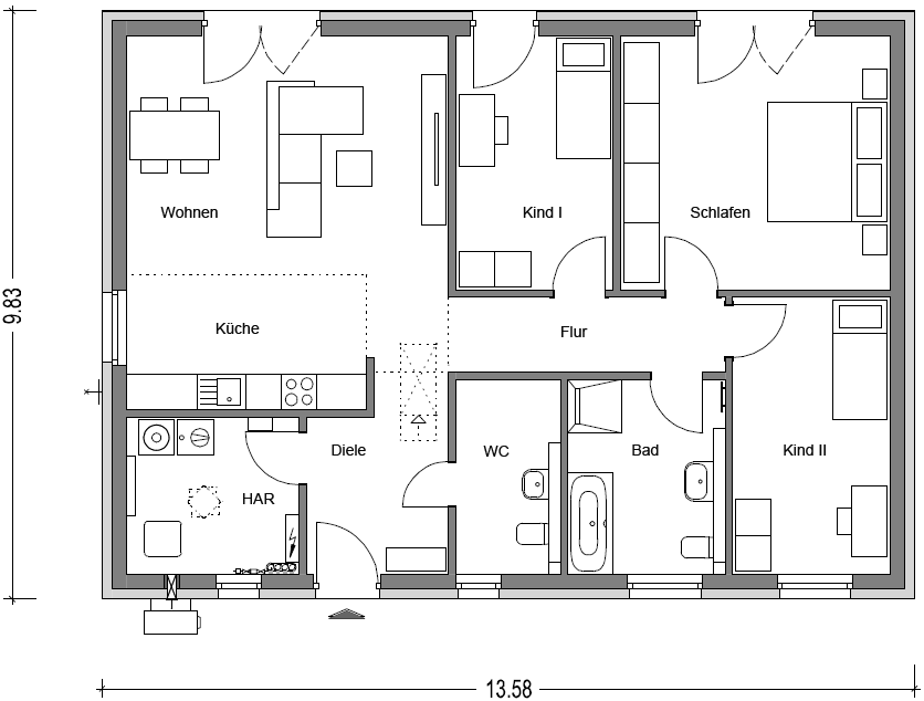 4 Zimmer, Küche, Bad, Gäste-WC, Diele, Flur, HAR